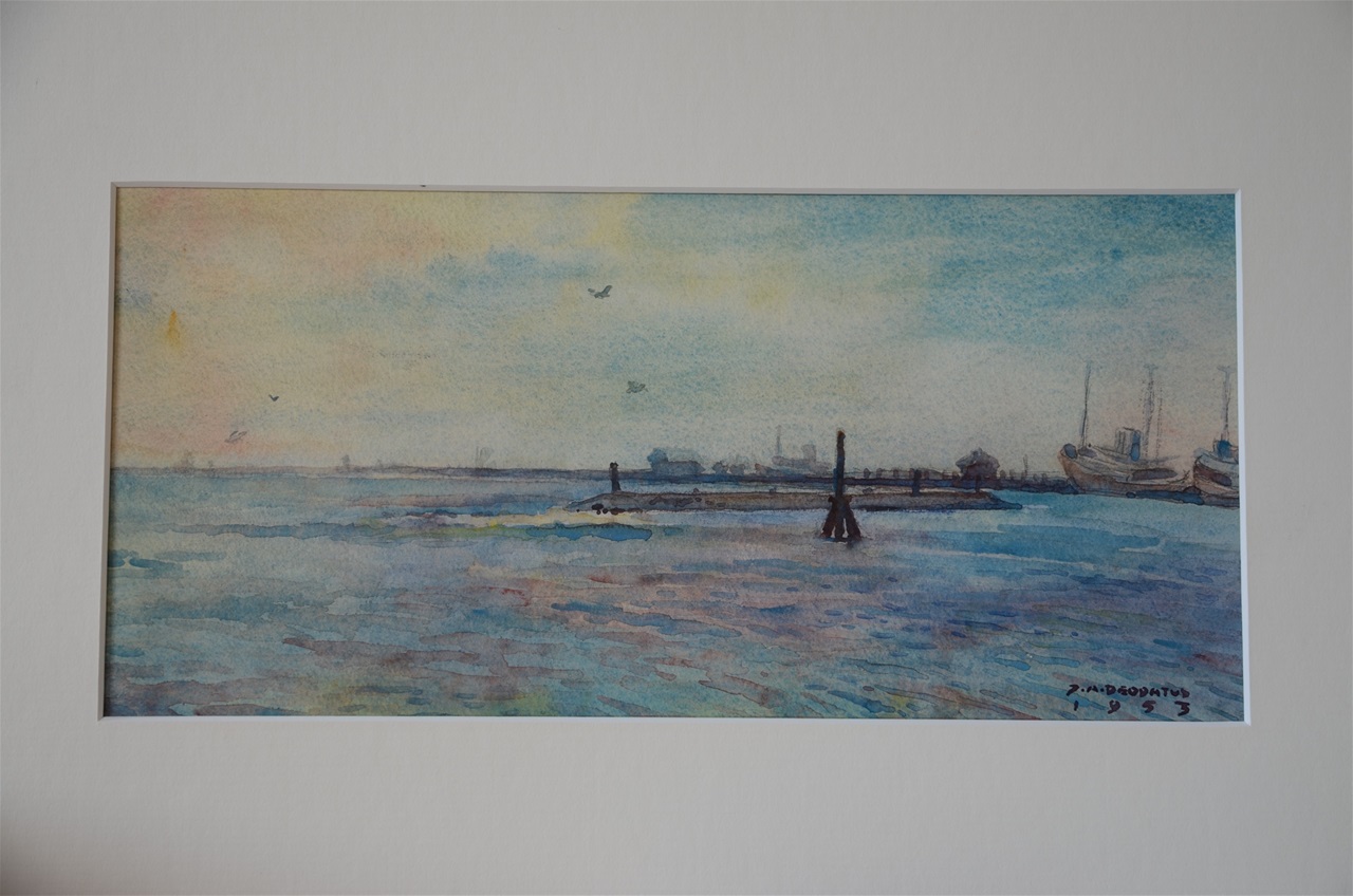 aquarel, 1953 haven West Terschelling